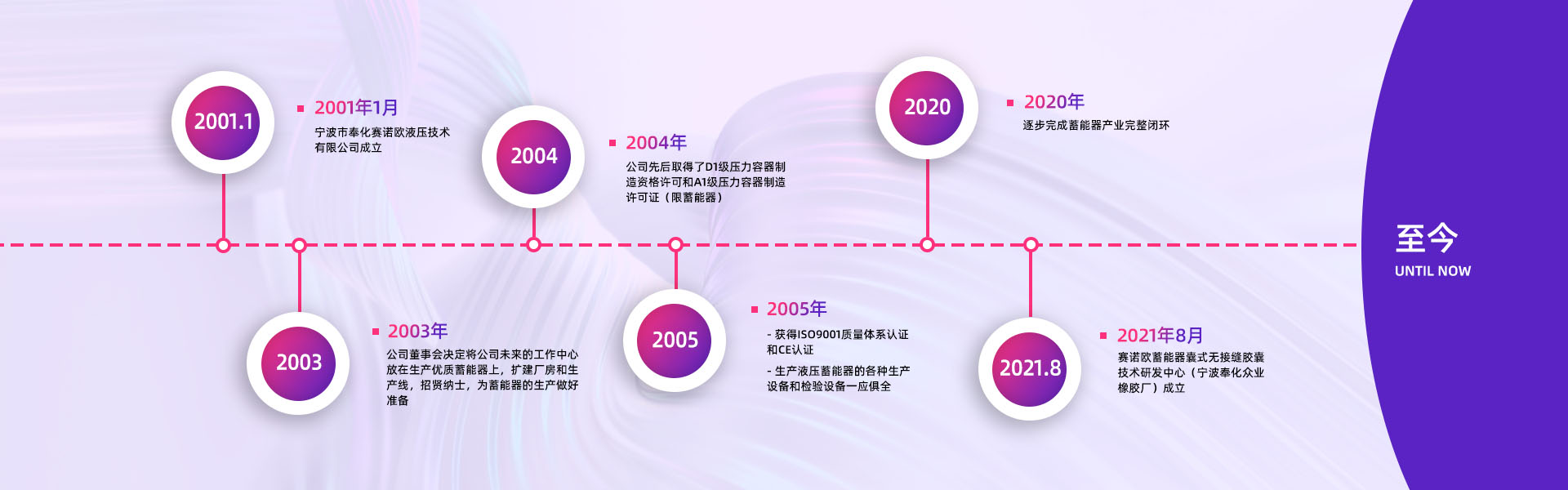 寧波市奉化賽諾歐液壓技術有限公司創(chuàng)建于2001年7月,是國內優(yōu)秀的液壓蓄能器專業制造公司,制造設備齊全,檢測手段完善。同時也是探索蓄能器囊式結構一體化的科研創(chuàng)新型企業。 2001年,公司董事會決定將公司未來的工作重心放在生產優(yōu)質蓄能器上。公司一方面著手于廠房擴建和生···